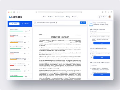 Legaliser offers AI-powered contract management solutions, including comprehensive contract analysis, intuitive drafting tools, and a wide range of customizable legal templates. Streamline your legal workflow and enhance compliance with our advanced AI legal technology.
